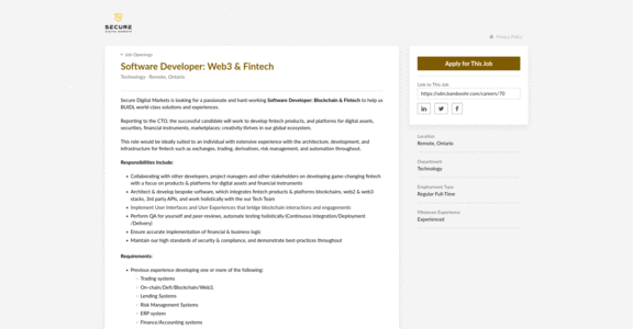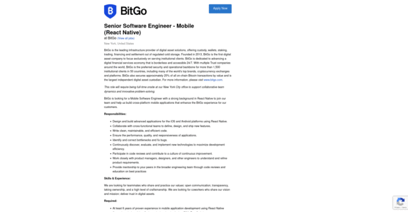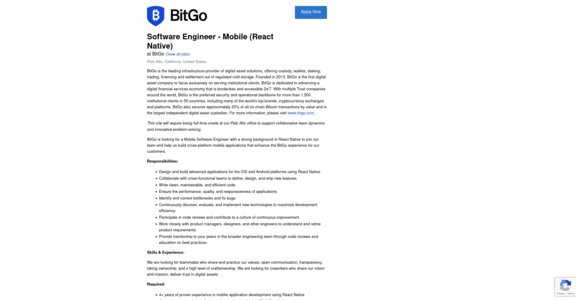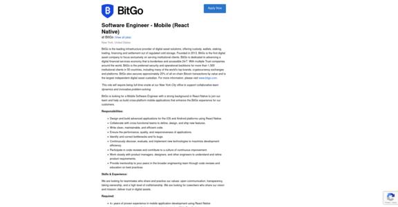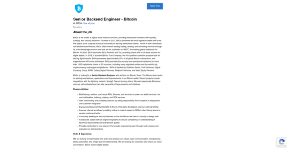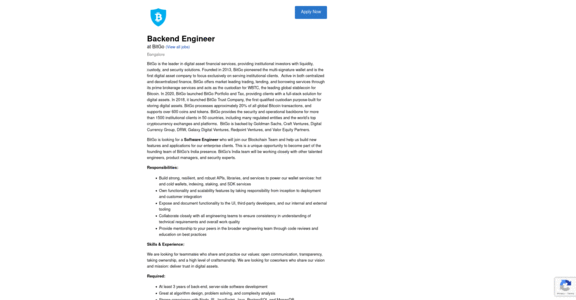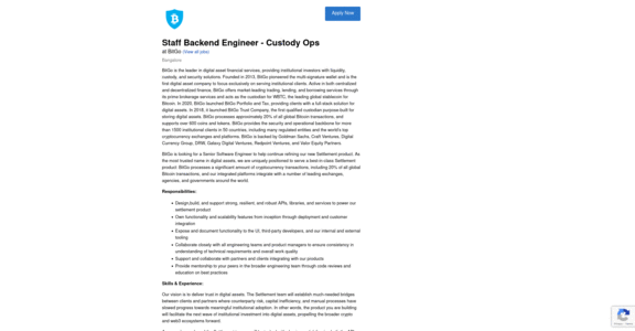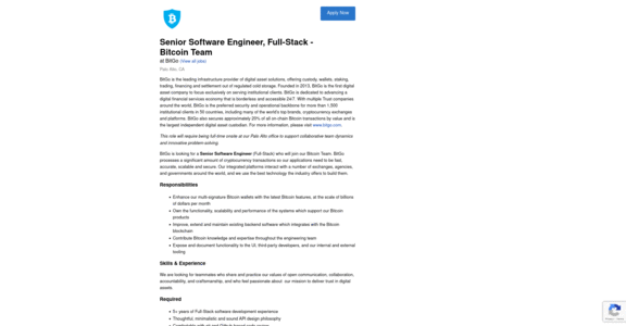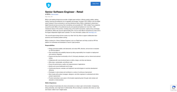 Compared to similar job titles, this role focuses on developing financial products with a specific emphasis on bitcoin and requires strong coding skills across different technologies.