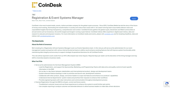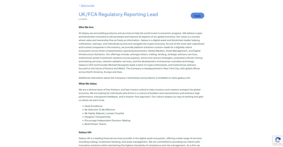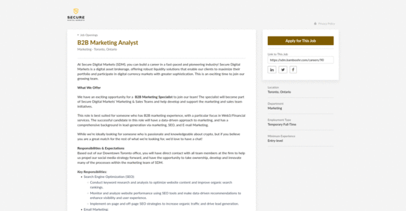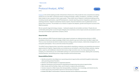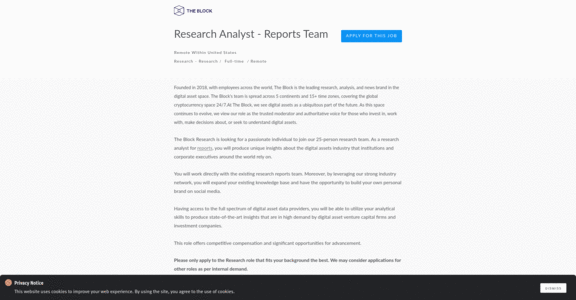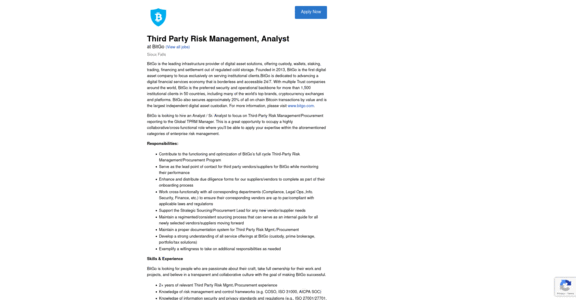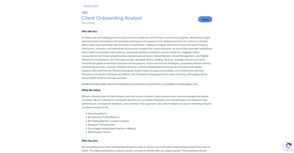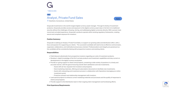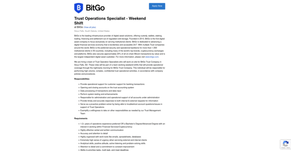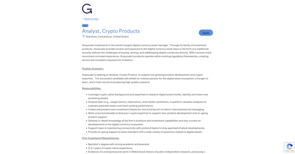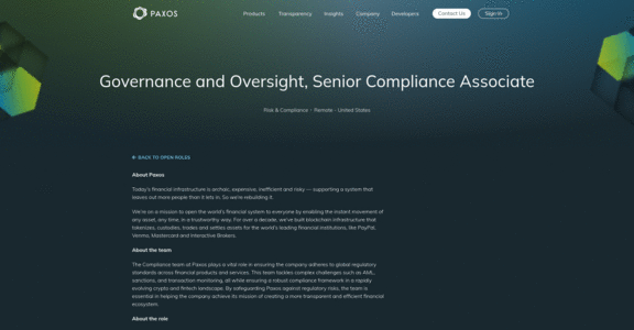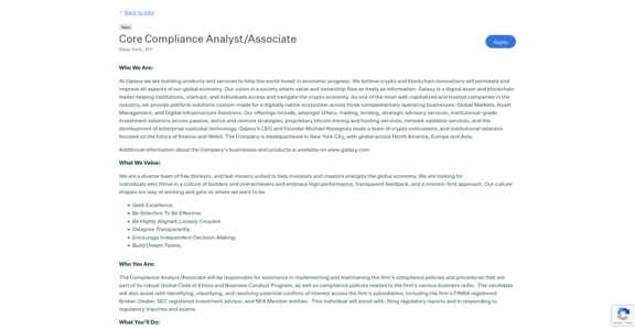 This compliance analyst role requires strong knowledge and experience in digital assets and SEC requirements, making it more specialized compared to other compliance analyst positions.