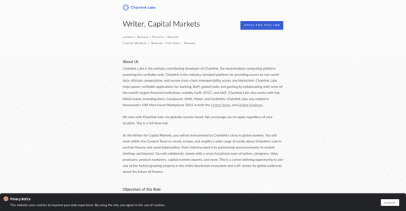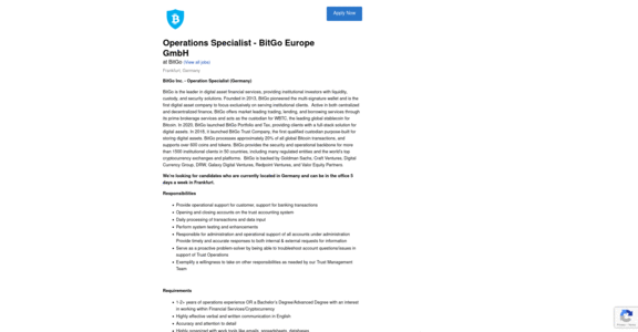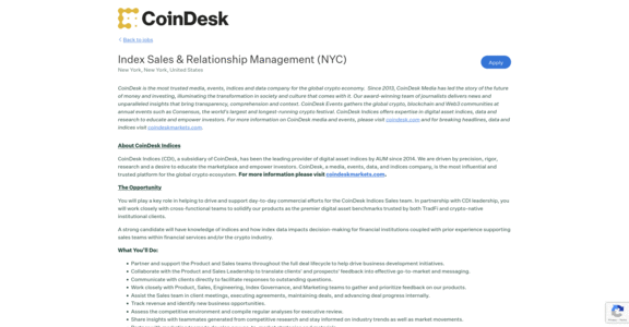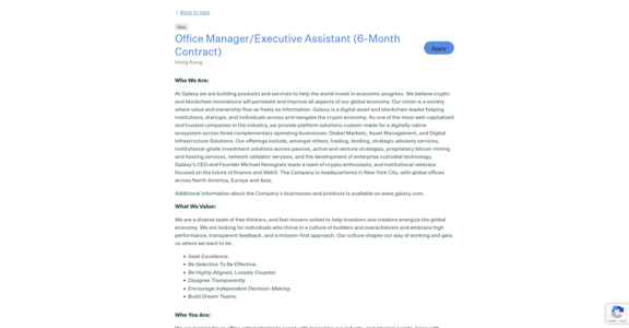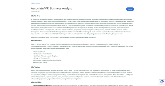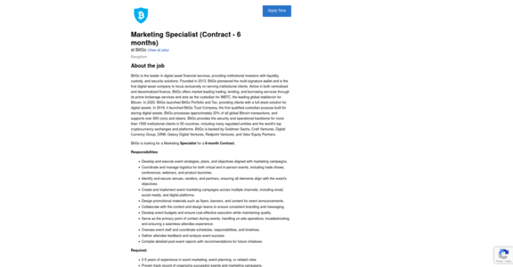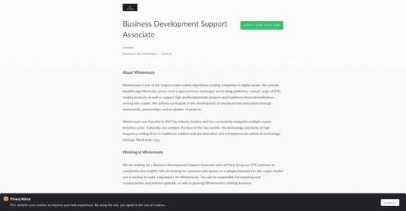 This job requires a strong understanding of the crypto markets and institutional finance, which is in line with other business development support associate roles focusing on cryptocurrency and blockchain projects.