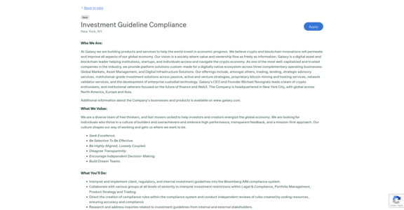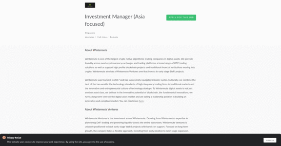 Compared to similar job postings for Investment Managers, this role is predominantly focused on cryptocurrency and blockchain technology, requiring specific knowledge and experience in the crypto industry.