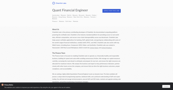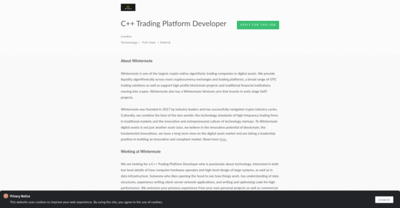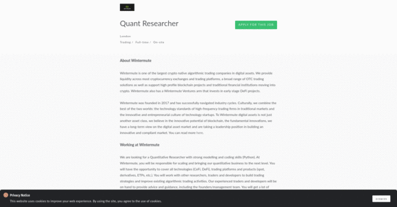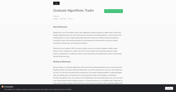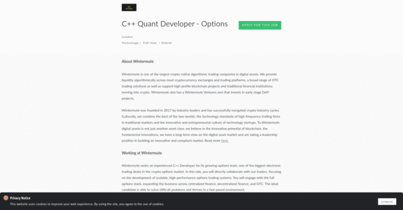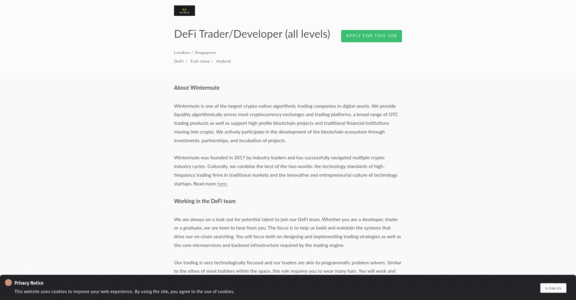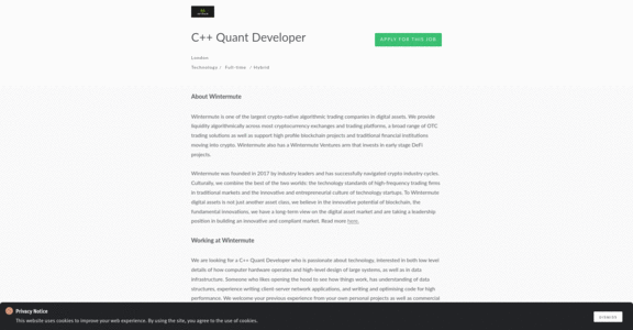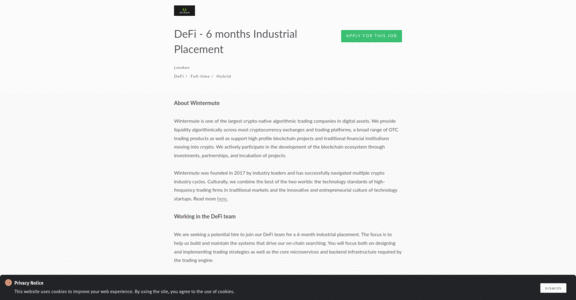 Compared to other DeFi industrial placements, this role emphasizes a strong focus on programming proficiency with languages like Python, Rust, or Go, along with a deep understanding of trading strategies and blockchain fundamentals.