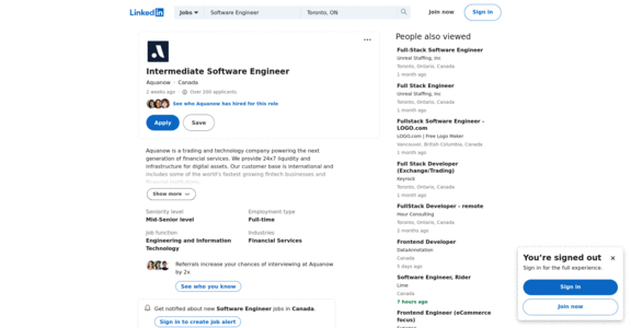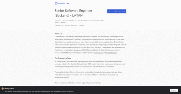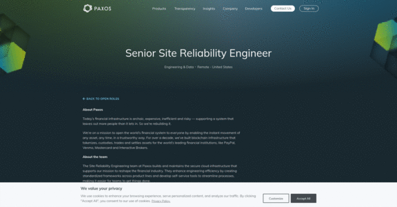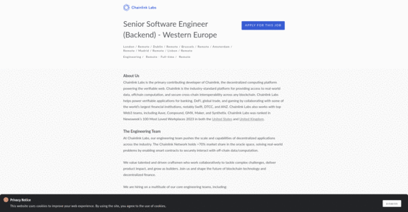 This job requires a similar skill set to other Intermediate Software Engineer positions, focusing on backend development, cloud infrastructure, and API design, but may have a specific emphasis on financial services and cryptocurrency market data.