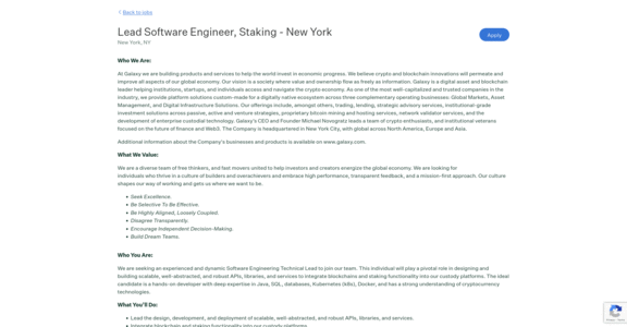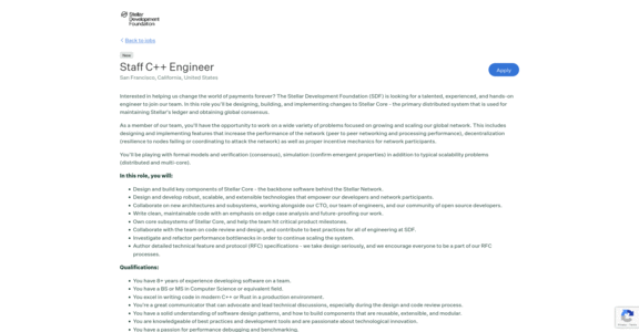 This job requires a strong background in blockchain technology and expertise in secure and scalable software design. It also involves leading and collaborating with cross-functional teams, setting it apart from other Staff Software Engineer roles.