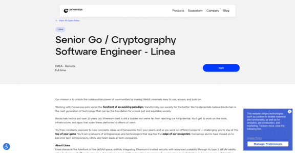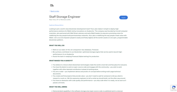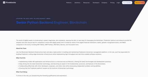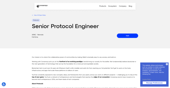 - 2+ years of hands on blockchain, consensus protocols, distributed systems, applied cryptography, or similar systems