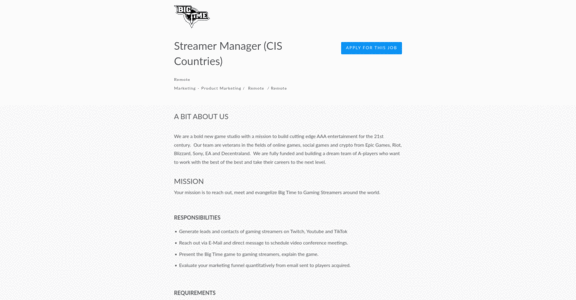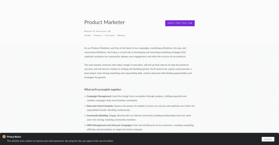 - Comfortable working EST hours + ad hoc community management check-ins as needed