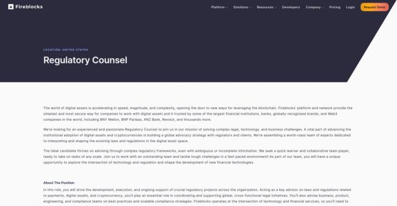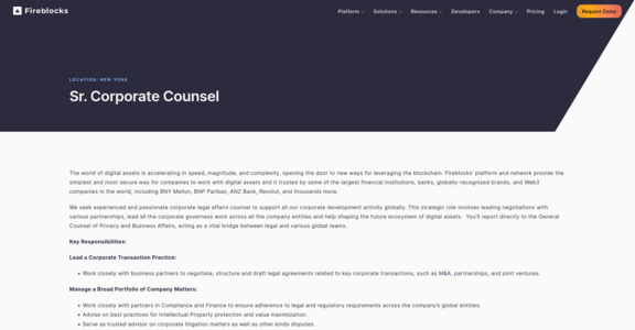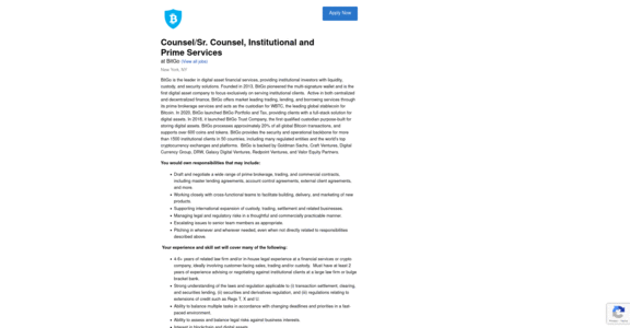 - 2-5 years of experience practicing law at a top-tier law firm or as in-house counsel for a firm specialized in financial services, fintech and/or crypto