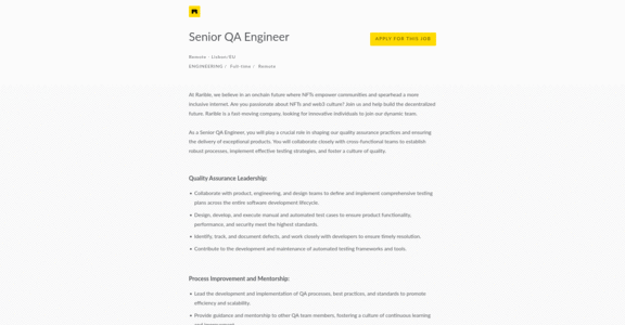 This role requires strong knowledge of QA methodology and tools, as well as experience in software testing, with a preference for candidates comfortable with programming in a Javascript/NodeJS environment. It also emphasizes leadership skills and the ability to work closely with management and the product team.