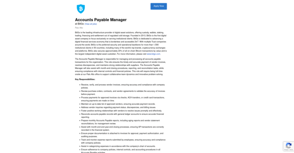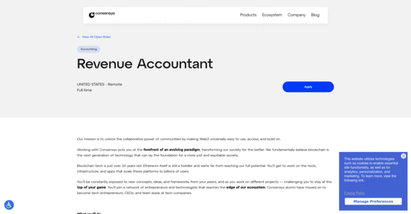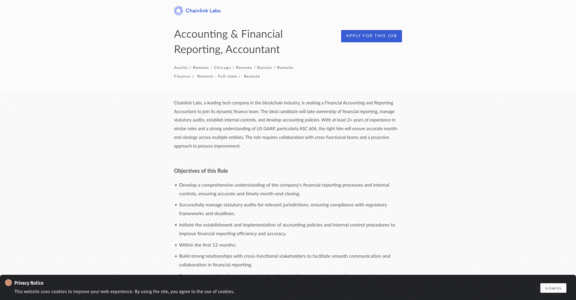 Compared to similar advertised roles, this job emphasizes the need for experience in both traditional and crypto accounting, reflecting the specific requirements of the blockchain industry.