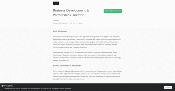 This job requires a solid understanding of both traditional financial and digital assets services, and it puts a strong emphasis on building relationships and partnerships within the Asian markets. It involves a combination of business development, communication skills, and knowledge of crypto and trading, setting it apart from typical business development roles.