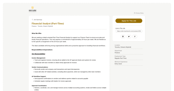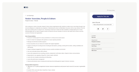 Compared to similar People & Culture roles, this position requires extensive knowledge of employment legislation with a focus on Ontario, and it emphasizes maintaining confidentiality and professionalism.