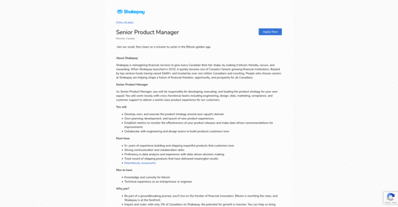 This job for Senior Product Manager aligns with similar roles requiring extensive experience in product strategy, data analysis, and collaboration skills, with the added focus on bitcoin knowledge and financial innovation.